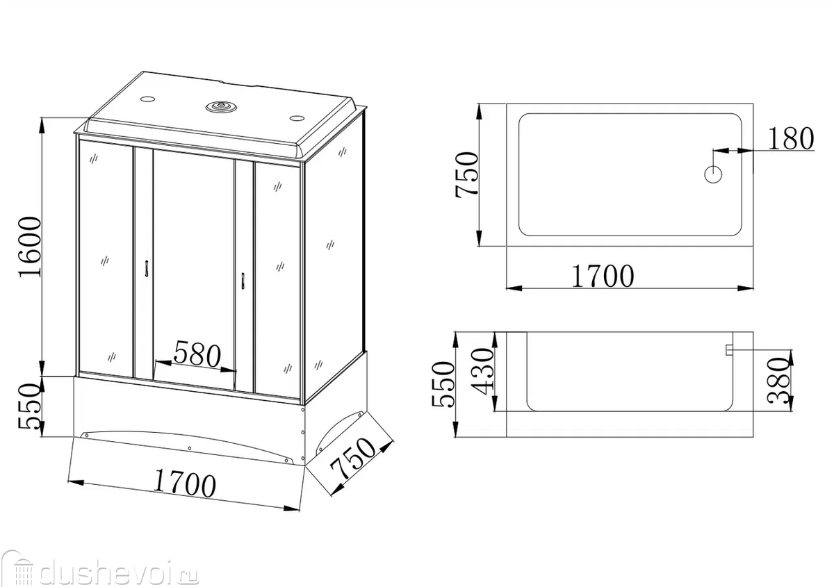 Душевая кабина Талиенте 170x75 TA-17075G стекло тонированное, профиль матовый хром в Люберцах — это отличный выбор для тех, кто любит комфорт, стиль и современные технологии.