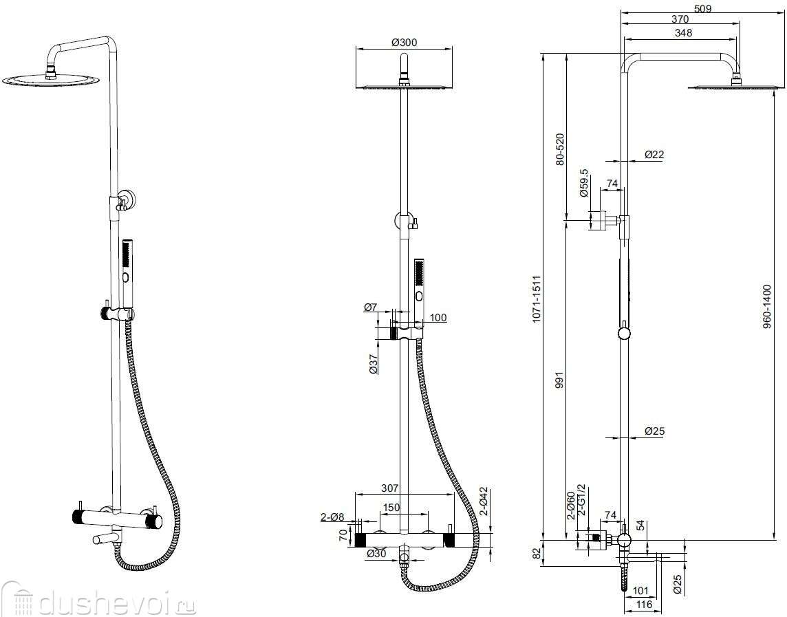 Душевая стойка Ravak Termo 300 TE 092.00/150 X070098